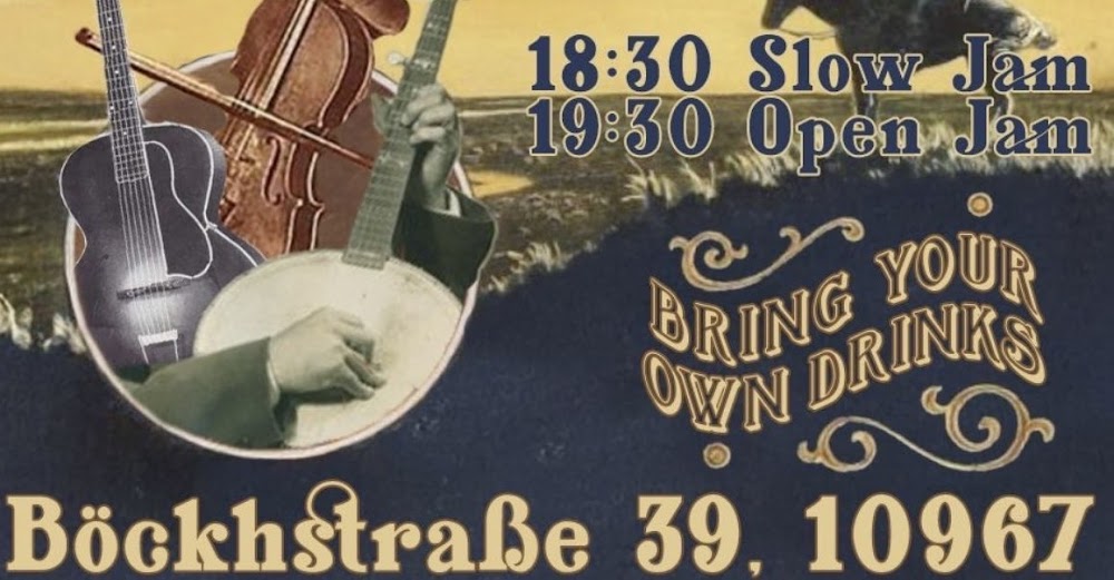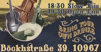 Every third Tuesday. All skill levels of fiddle, banjo, guitar, and bass. This time at two fellas in Pankow!