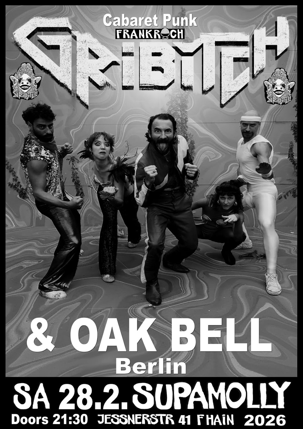 Oak Bell plays songs from Europe and Gribitch plays cabaret punk. #concert at Supamolly.