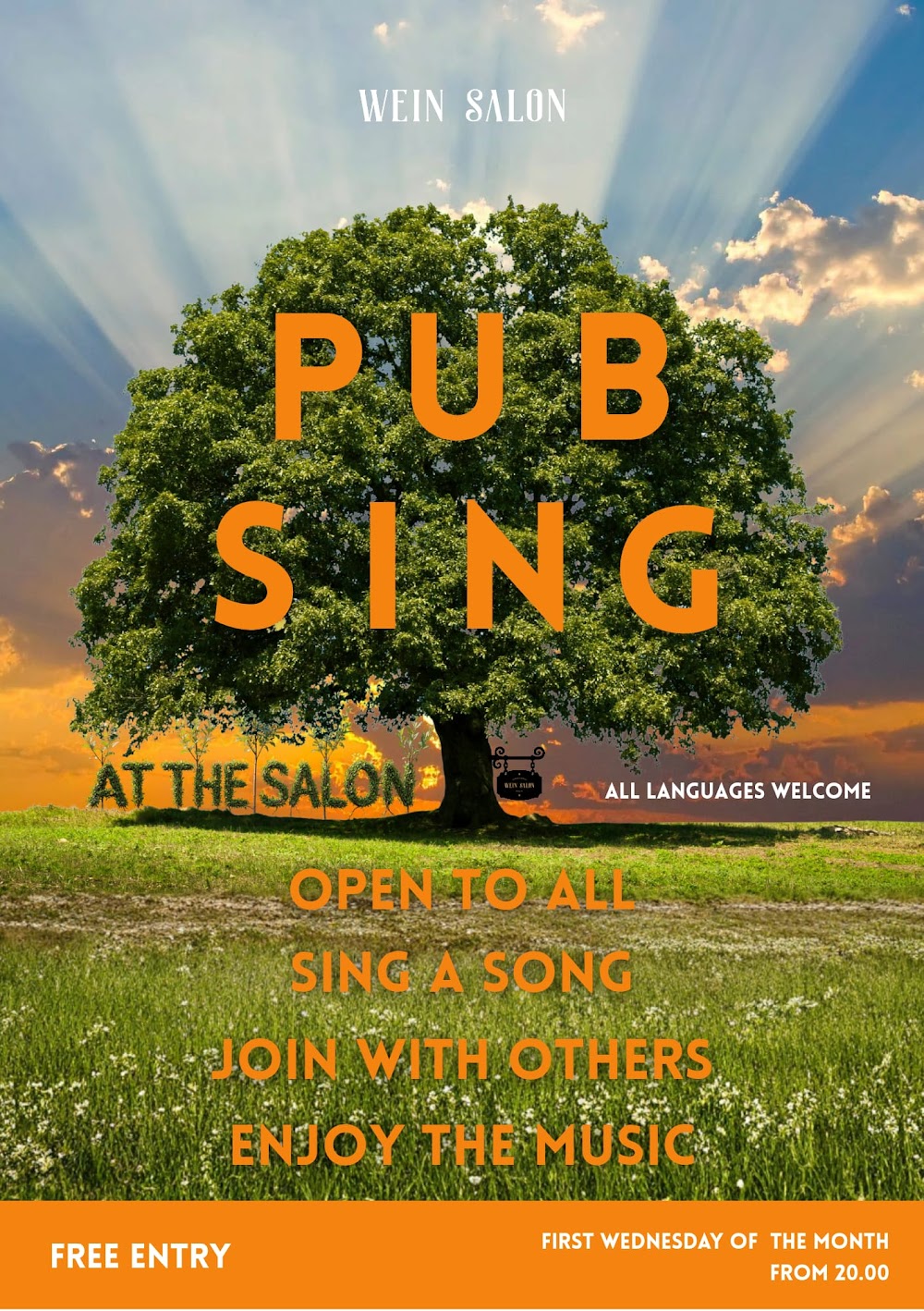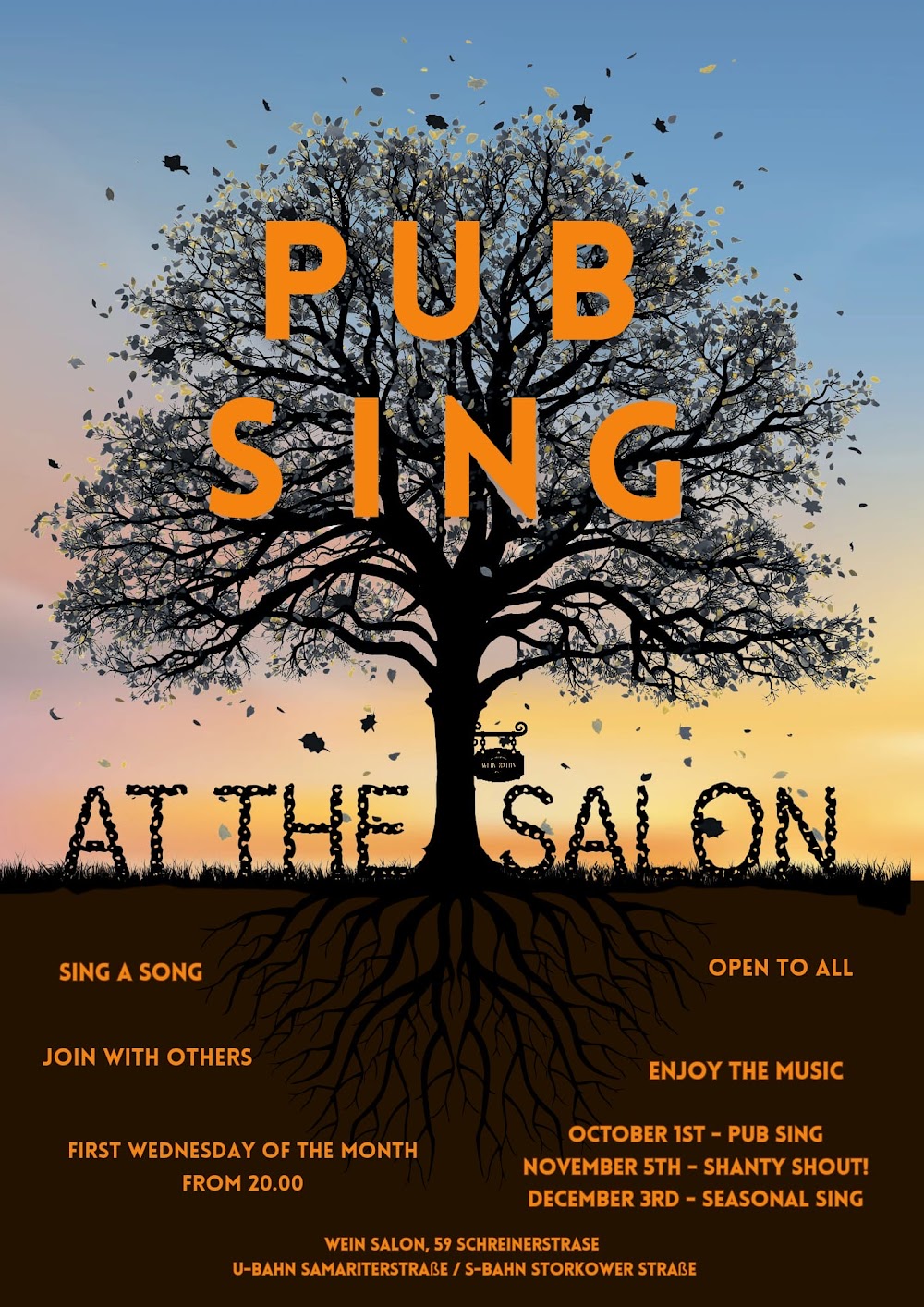 Open Session. Pub Sing at Wein Salon, 59 Schreinerstraße. Every first Wednesday of the month. Open to all, Enjoy the Music. #singing