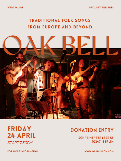 Oak Bell plays traditional songs from Europe and beyond @Wein Salon [Schreinerstraße 59, 10247 Berlin (Friedrichshain)] #concert #folk