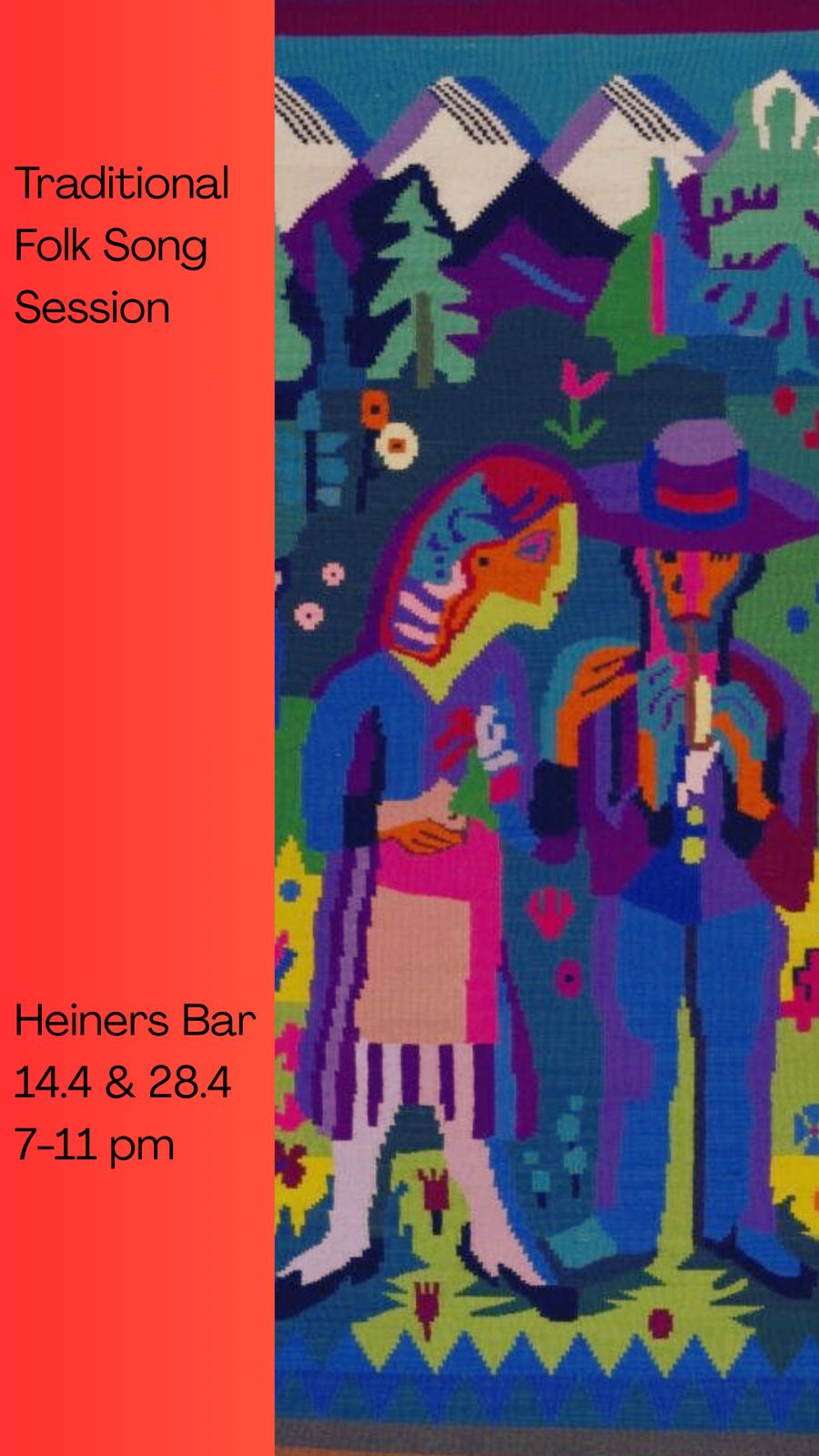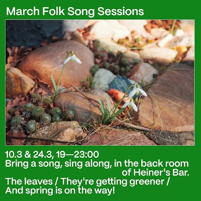 Open Session. Traditional folk session with a focus on singing. Every second & fourth Tuesday in the back room of Heiner's Bar. Come sing a traditional song from anywhere. all welcome to listen or sing. #heiners