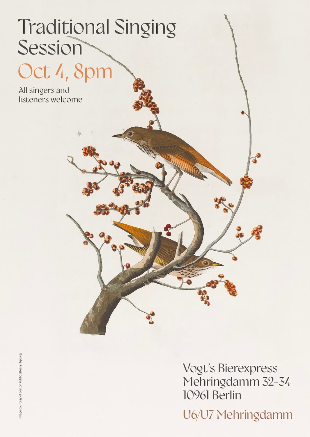 All singers and listeners welcome Vogt's Bierexpress Mehringdamm 32-34 10961 Berlin