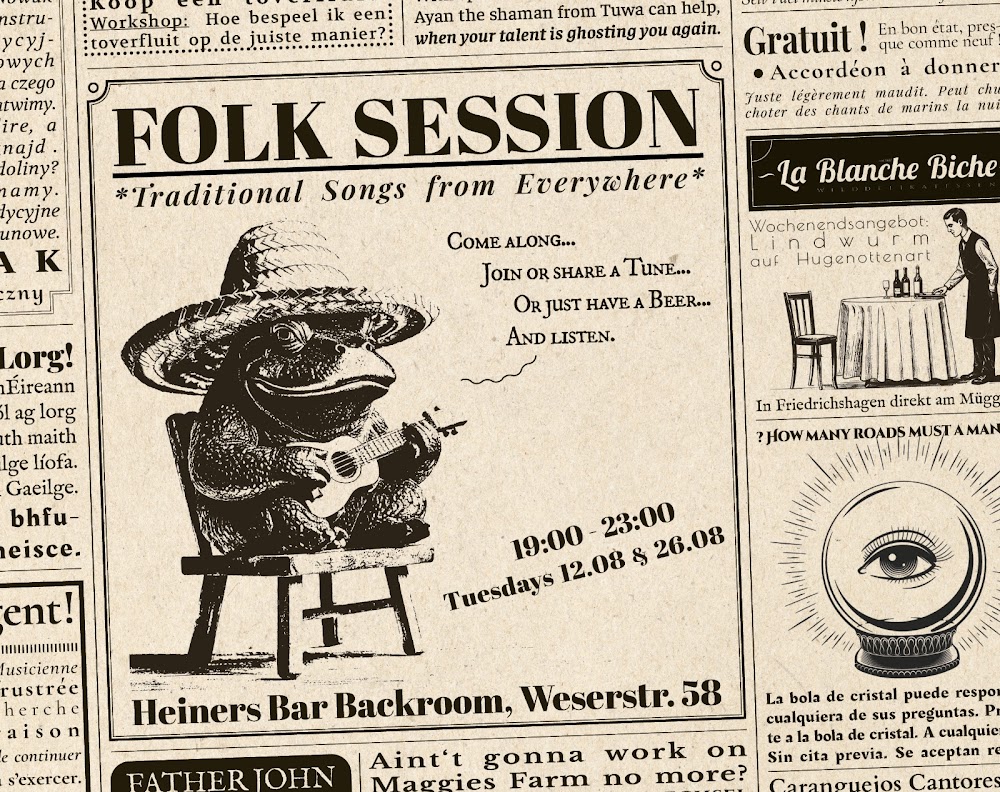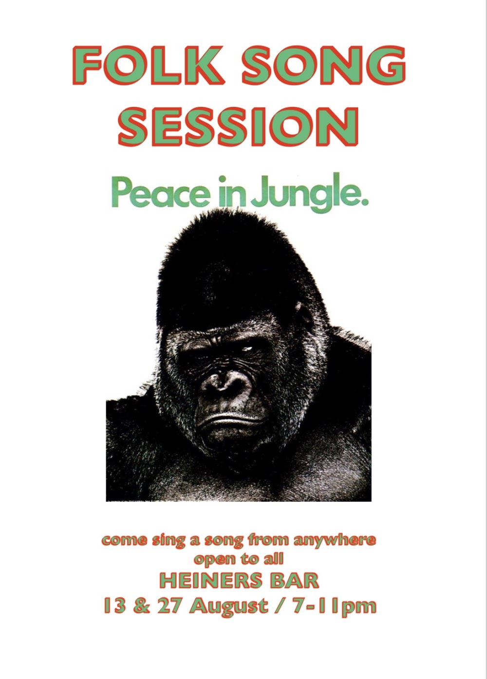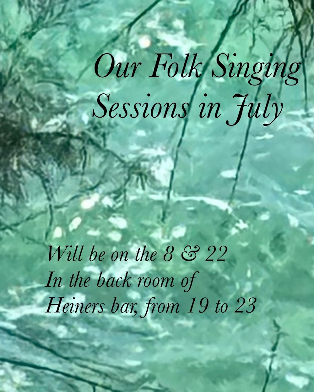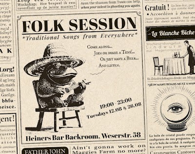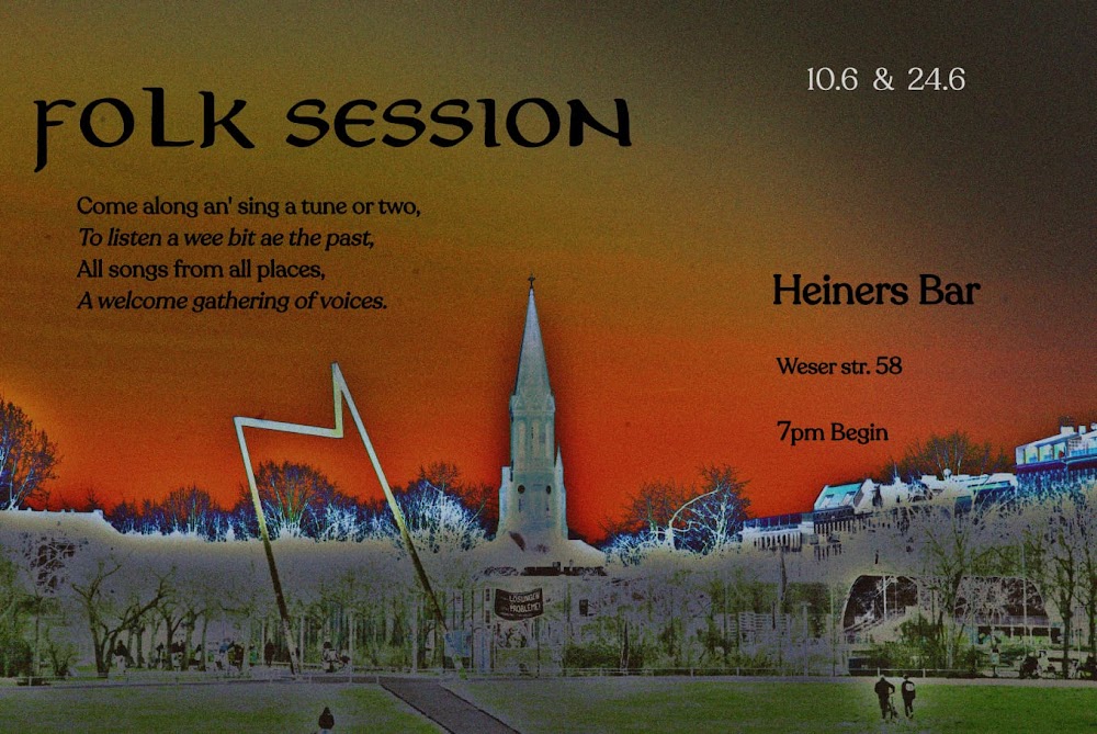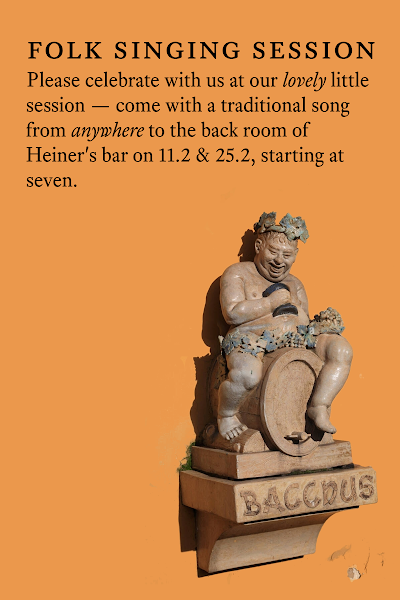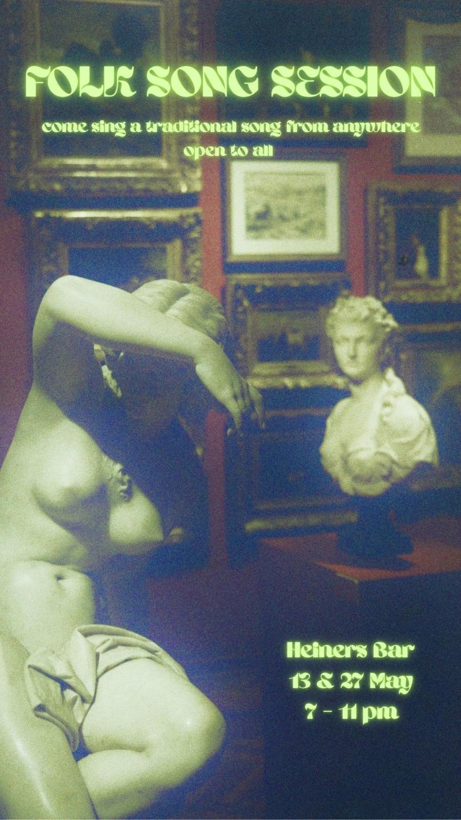 Folk session. Every second & fourth Tuesday. Come sing a traditional song from anywhere, all welcome to listen or sing #heiners