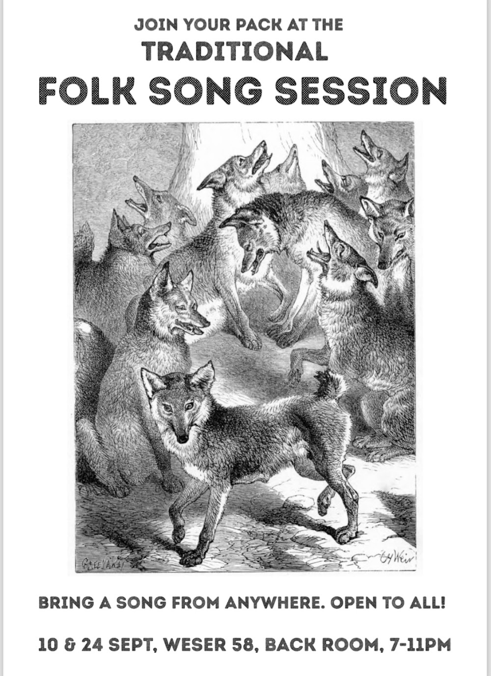 Traditional Folk session. Every second & fourth Tuesday. Come sing a traditional song from anywhere, all welcome to listen or sing #heiners